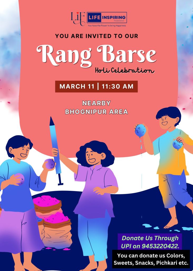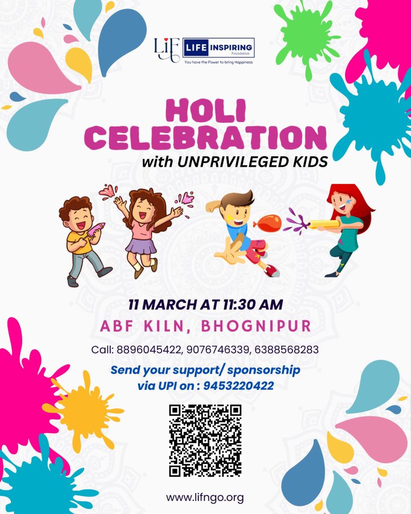Life Inspiring Foundation (LiF) NGO invites you to join us in spreading the vibrant spirit of Holi with our special campaign for underprivileged children. Let’s paint smiles and create lasting memories together!