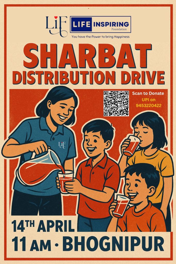 As the scorching summer heat intensifies and temperatures soar beyond 40°C, Life Inspiring Foundation (LiF NGO) continues its mission to serve those who toil tirelessly under the sun. On 14th April at 11:00 AM, we are proud to announce a Sharbat Distribution Drive in the Bhognipur area, specifically at ABF Brick Kiln, where nearly 150–200 workers brave the heat daily to earn their livelihood.