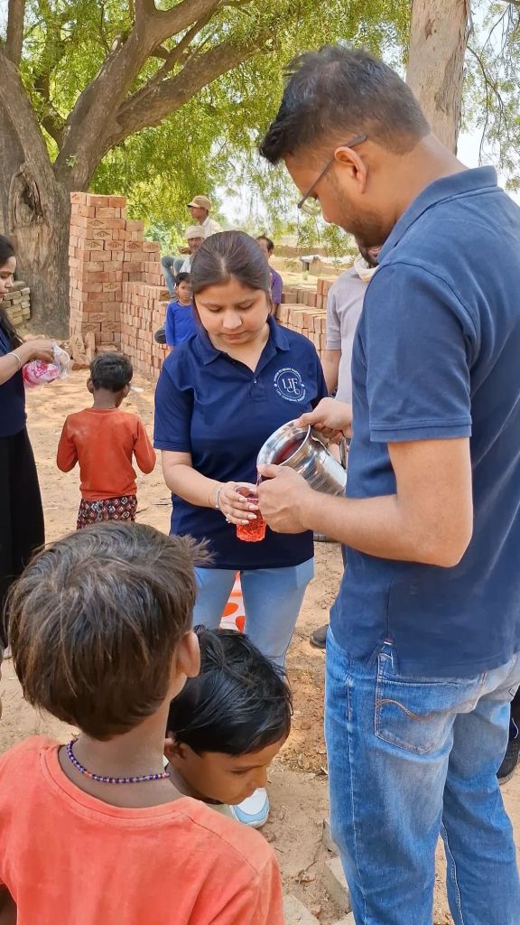 Life Inspiring Foundation (LiF NGO) द्वारा आज दिनांक 14 अप्रैल को प्रातः 11 बजे भोगनीपुर के समीप ABF ईंट भट्ठा पर एक विशेष सेवा कार्यक्रम का आयोजन किया गया। इस अवसर पर NGO की टीम ने ईंट भट्ठा पर कार्यरत श्रमिकों, महिलाओं और बच्चों को गर्मी से राहत देने हेतु ठंडा, ताज़ा और स्वादिष्ट शरबत वितरित किया।