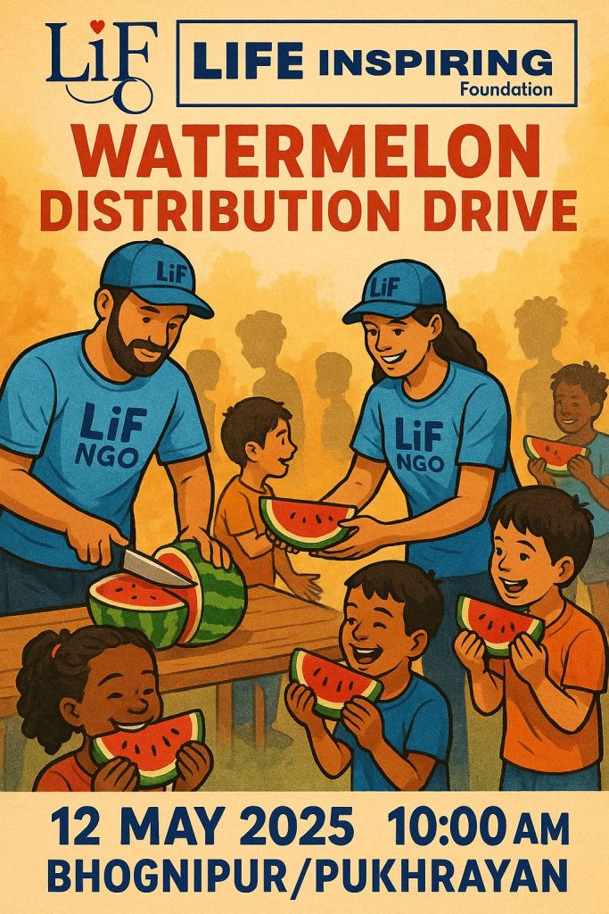 The scorching summer heat can be particularly harsh for those living without adequate shelter and resources. At Life Inspiring Foundation (LiF), we believe that even a small act of kindness can bring a significant amount of comfort and joy. That’s why we’re excited to announce our upcoming initiative: distributing fresh, juicy watermelons to some of the most vulnerable members of our community on **Monday, 12th May 2025, starting at 10:00 AM**, on the auspicious occasion of **Buddha Purnima**.